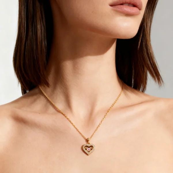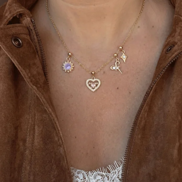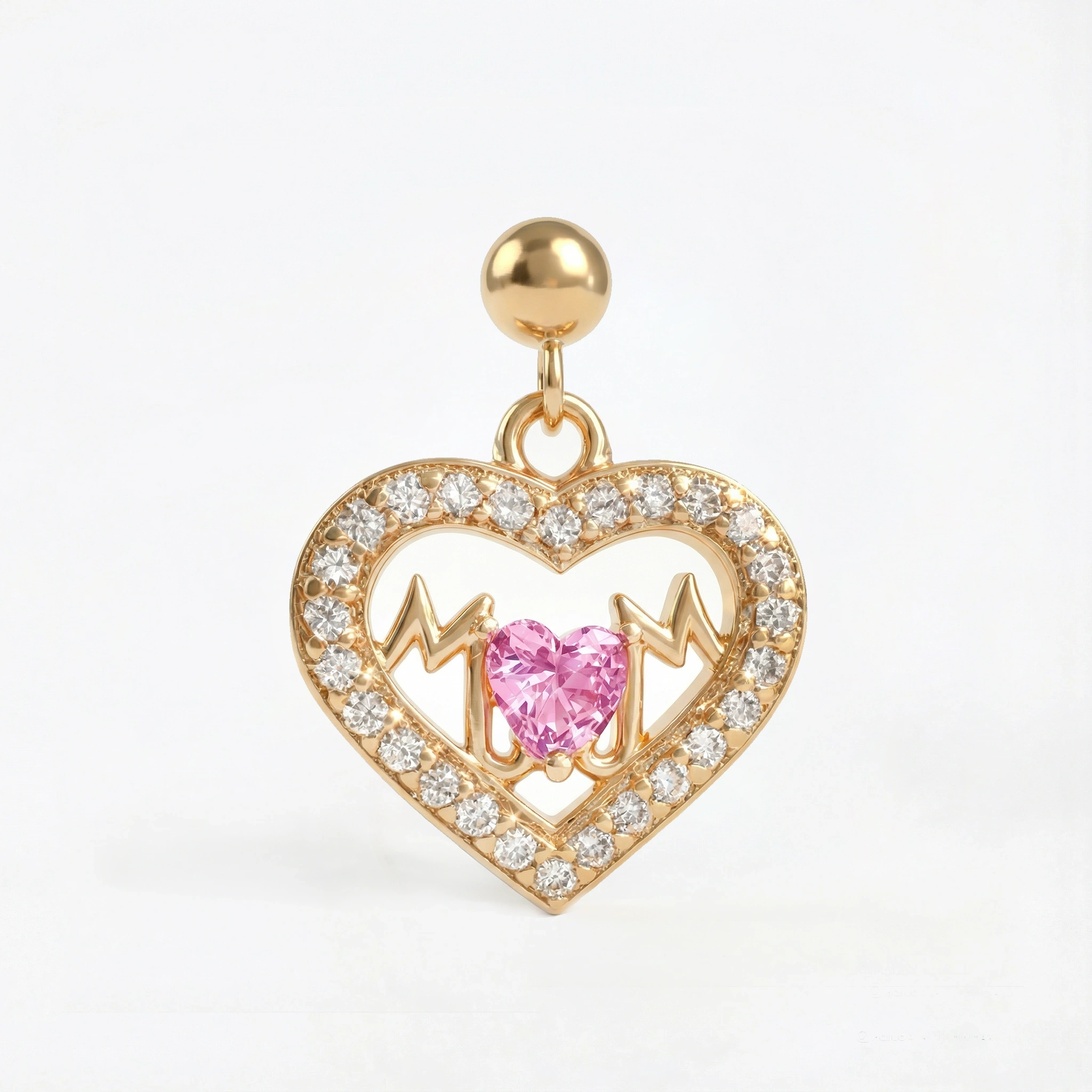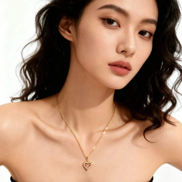 - Stones: Pink heart center stone with clear sparkle accents
