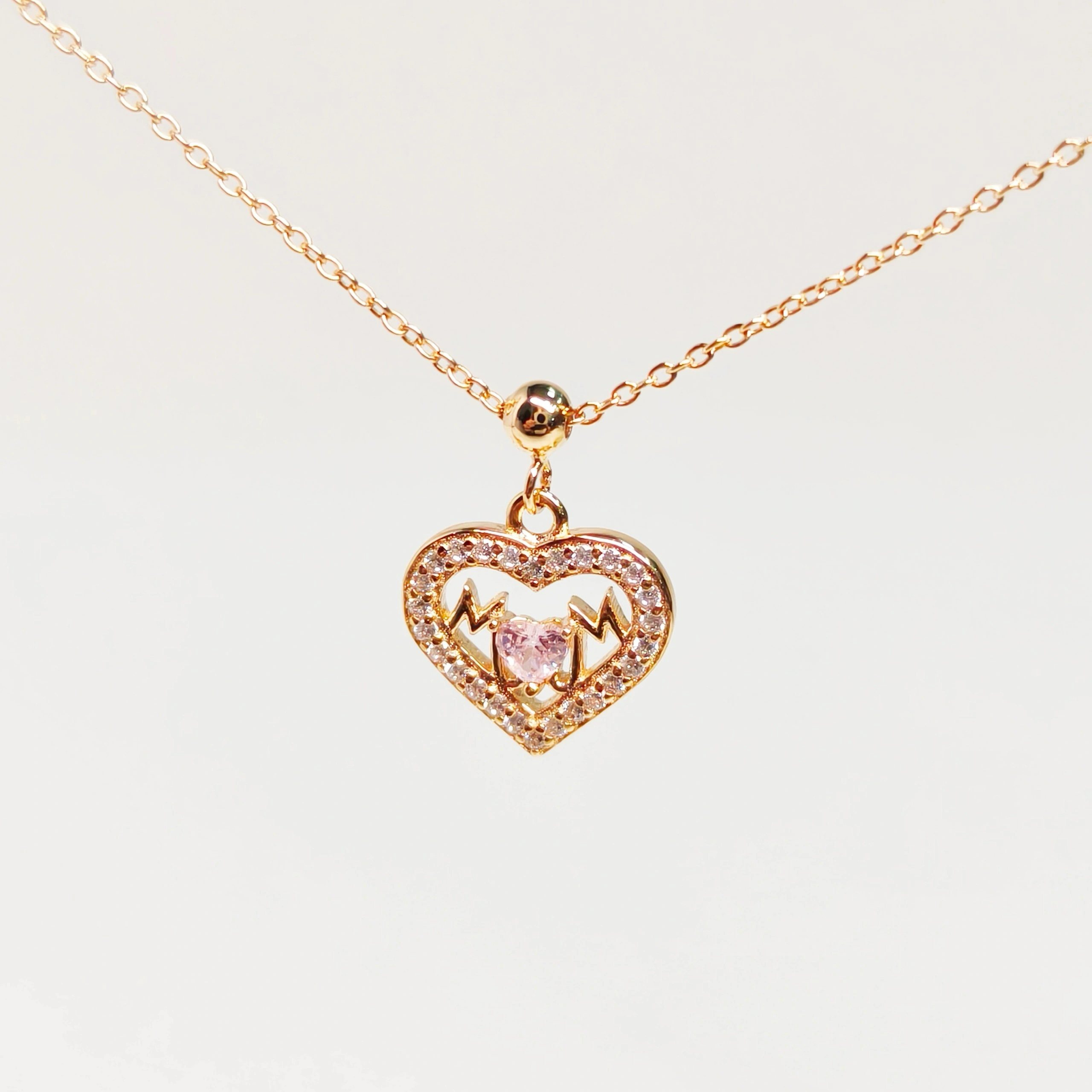 Mum Heartbeat Necklace: Sterling Silver Heart Pendant with “Mum” & Heartbeat Line